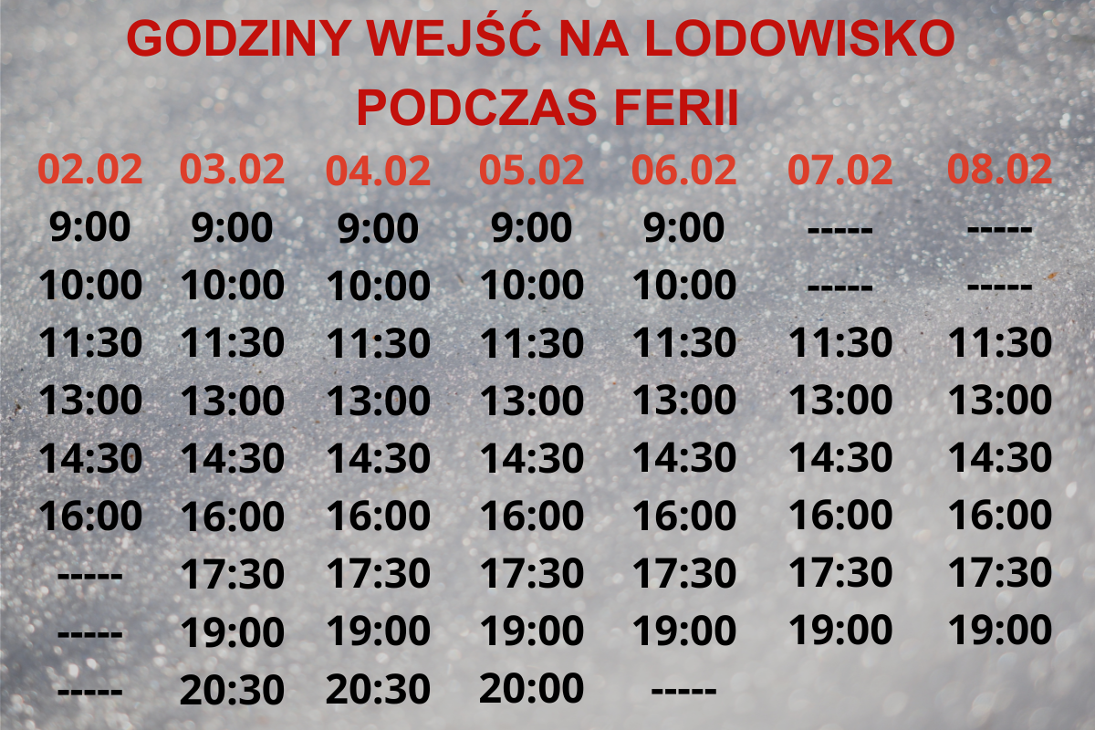 Uwaga zmiana! 08.02 godz. 10.00 ślizgawka będzie ogólnodostępna!